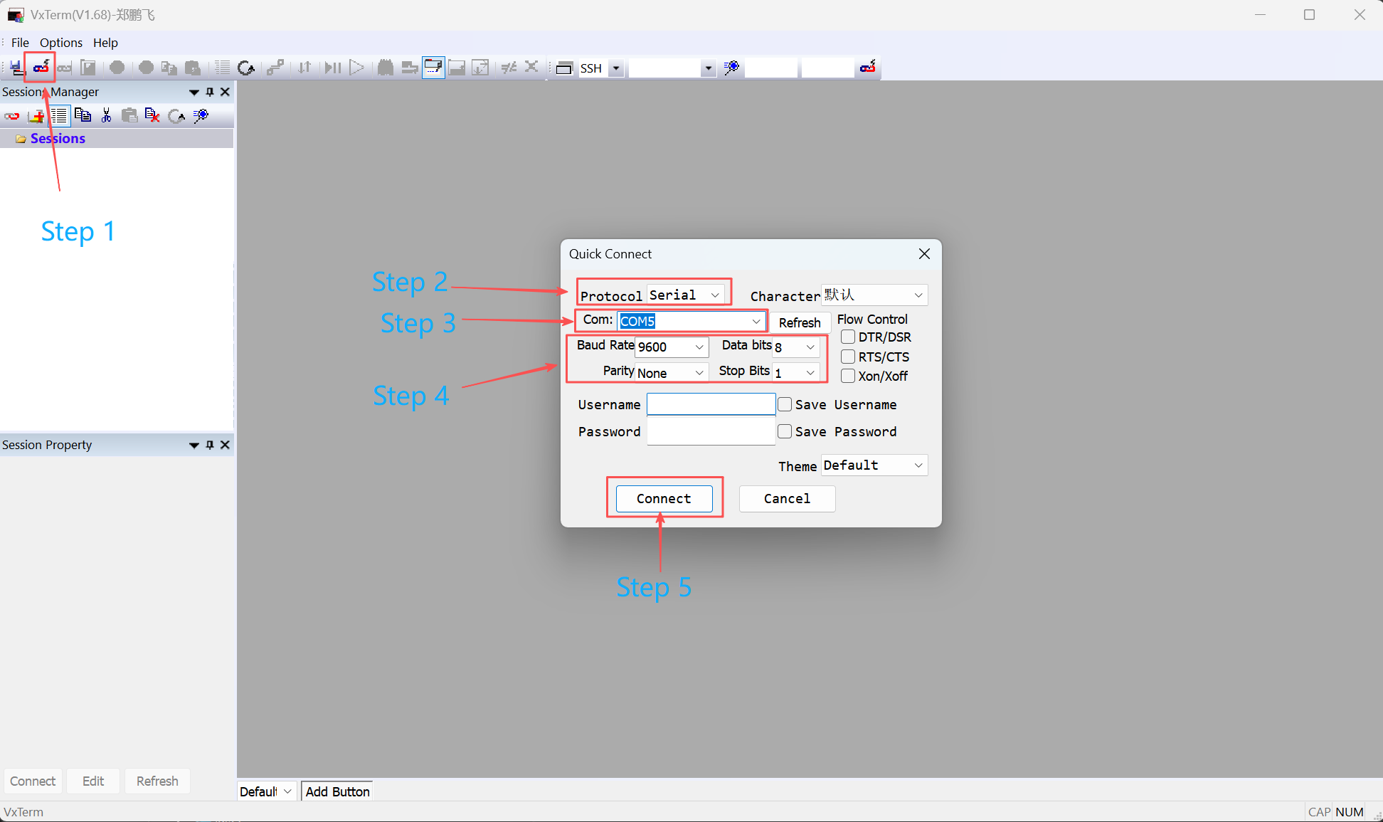 VxTerm 是一款支持串口与网络连接的终端软件,适合与 OP-BTS 通过 USB 串口或蓝牙虚拟串口进行交互式运行与调试。以下为与 OPBTPython 配合使用时的基本步骤与注意事项。