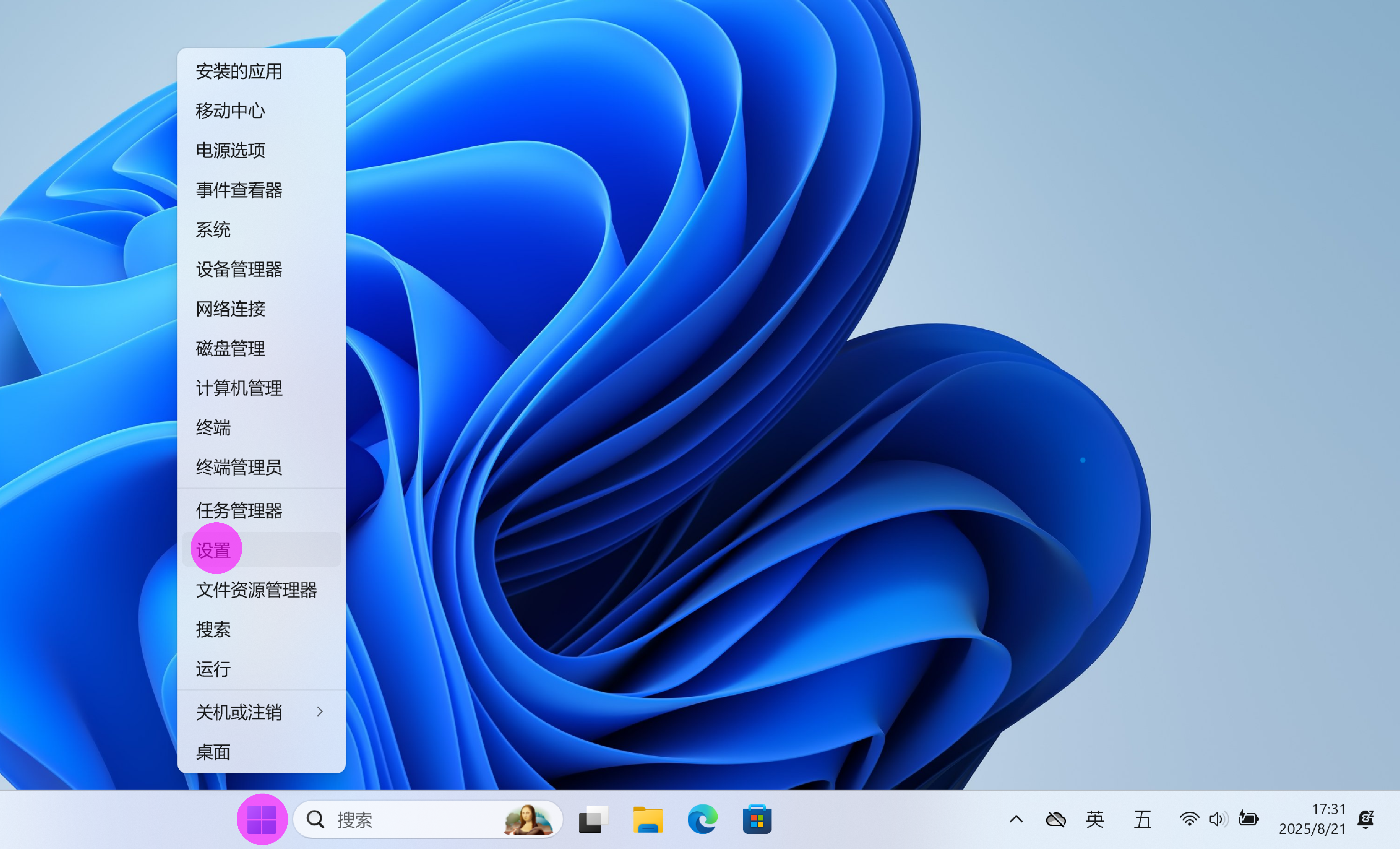 - 将OP-BT光电头处于开机状态,鼠标右击“开始”菜单,然后选“设置”项。